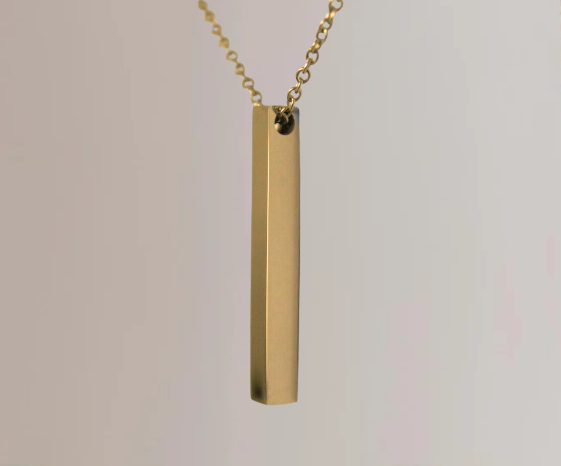 Vores personlige bar halskæde er en fusion af moderne stil og dybfølt følelse. Graver dette udsøgte vedhæng med meningsfuld tekst, forvandl det til et stykke, der fanger dine mest elskede minder. Giv den til dig selv eller til en speciel person, og lad denne personlige bar halskæde være en tidløs påmindelse om de øjeblikke, der definerer os.