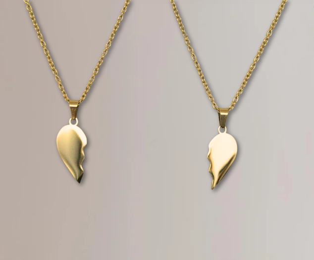 Forestil dig to delikate halskæder, der hver holder halvdelen af et hjerteformet vedhæng. Når de bæres hver for sig, virker de ufuldstændige, men sammen skaber de et smukt symbol på forbindelse og enhed. Hver halvdel er indviklet designet og repræsenterer kærligheden, der deles mellem to mennesker. Når de er adskilt, kan bærerne holde deres halvdel tæt på deres hjerte, en konstant påmindelse om det bånd, der binder dem sammen, uanset afstanden. Dette hjerteopdelt vedhæng er mere end blot et tilbehør; det er et løfte - en ubrydelig forbindelse mellem sjæle, fejring af kærlighed, venskab eller familie. Den hvisker historier om specielle øjeblikke og fælles drømme, hvilket gør hvert blik til en påmindelse om den særlige forbindelse, der overskrider tid og rum.