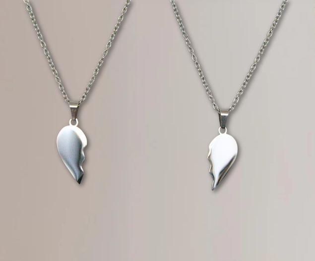 Forestil dig to delikate halskæder, der hver holder halvdelen af et hjerteformet vedhæng. Når de bæres hver for sig, virker de ufuldstændige, men sammen skaber de et smukt symbol på forbindelse og enhed. Hver halvdel er indviklet designet og repræsenterer kærligheden, der deles mellem to mennesker. Når de er adskilt, kan bærerne holde deres halvdel tæt på deres hjerte, en konstant påmindelse om det bånd, der binder dem sammen, uanset afstanden. Dette hjerteopdelt vedhæng er mere end blot et tilbehør; det er et løfte - en ubrydelig forbindelse mellem sjæle, fejring af kærlighed, venskab eller familie. Den hvisker historier om specielle øjeblikke og fælles drømme, hvilket gør hvert blik til en påmindelse om den særlige forbindelse, der overskrider tid og rum.